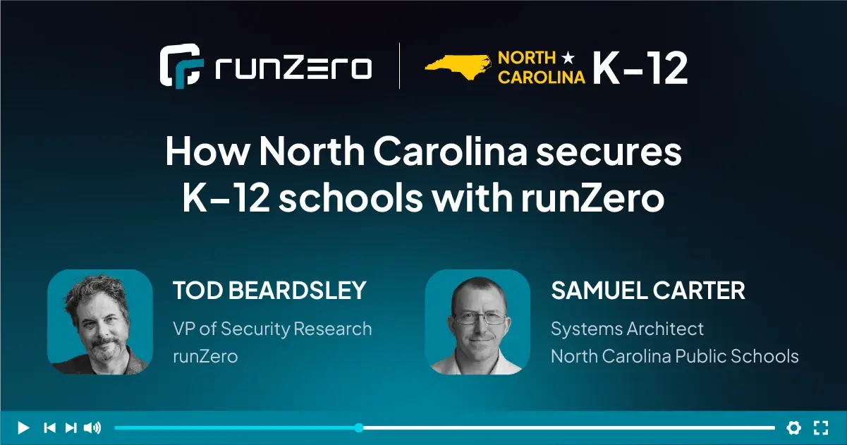 In this webcast we unpack how runZero supports a statewide exposure management program to protect 343 Public School Units across North Carolina.